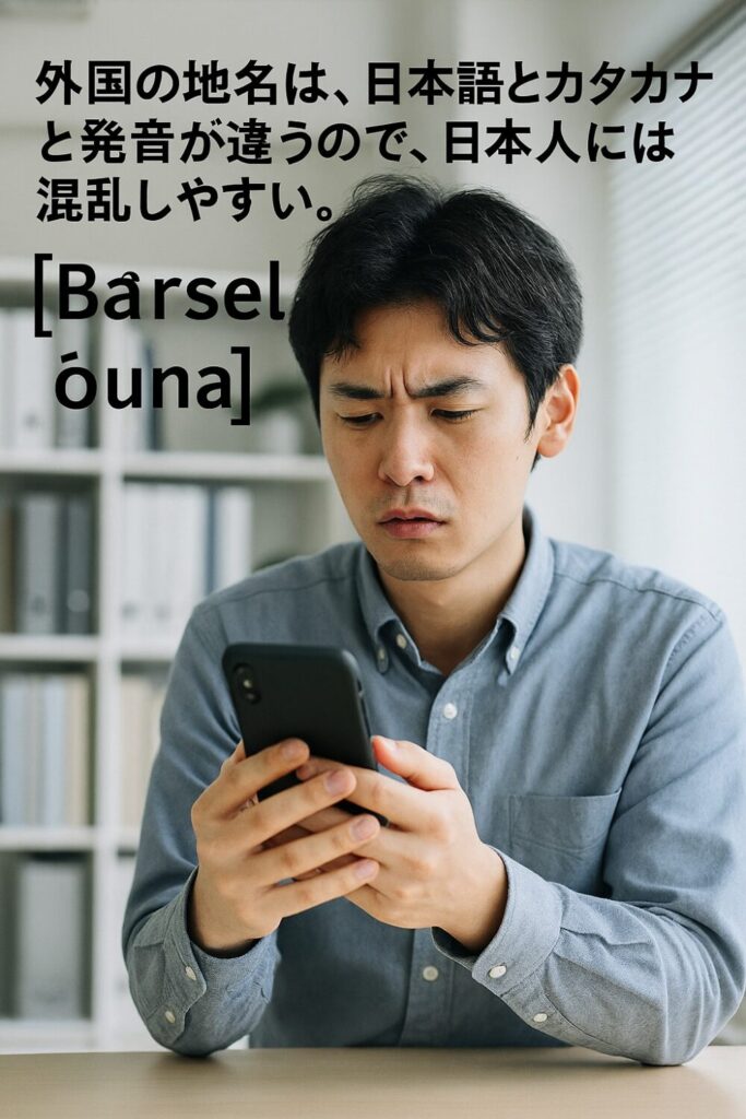 ほんとのところ、上記の都市名を英語でそれっぽく言っても外人さんにはほぼ通じない。それではということで、誤解を恐れず、上記地名を英語発音的カタカナでいうと次のようになる。