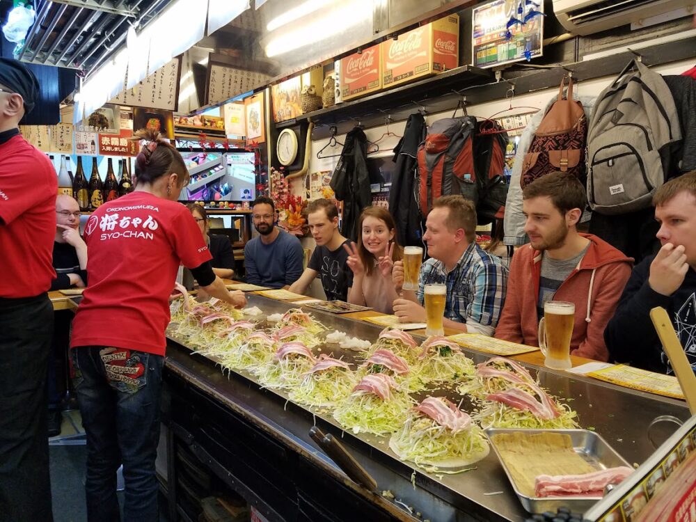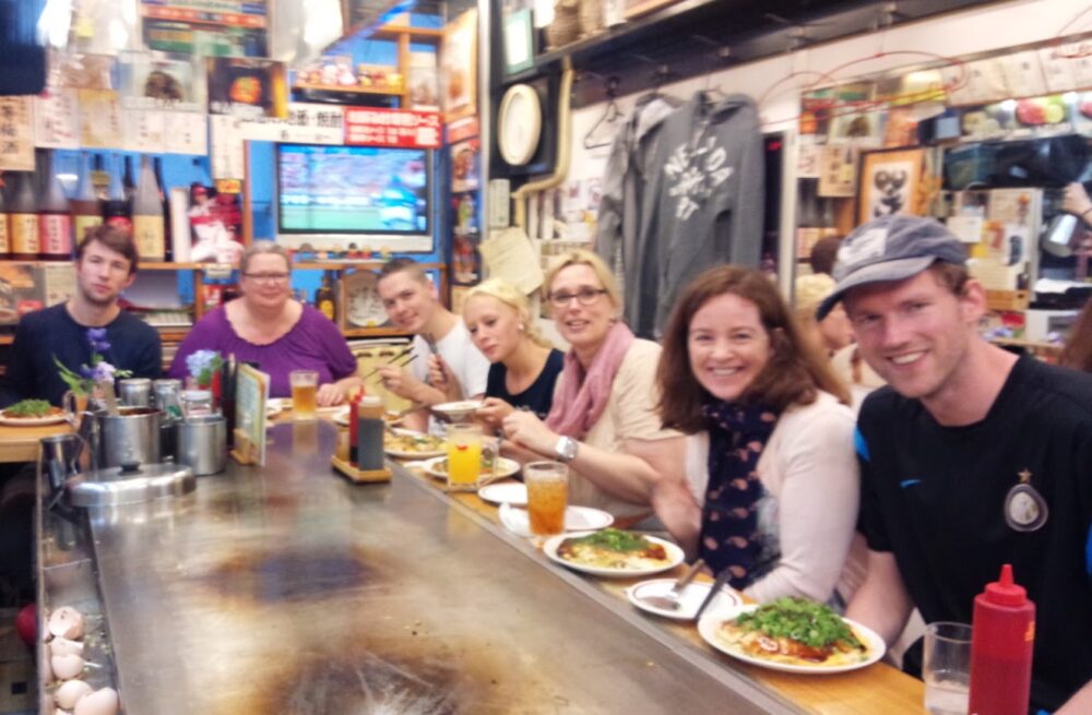 広島お好み焼き店「将ちゃん」にて。筆者右端。