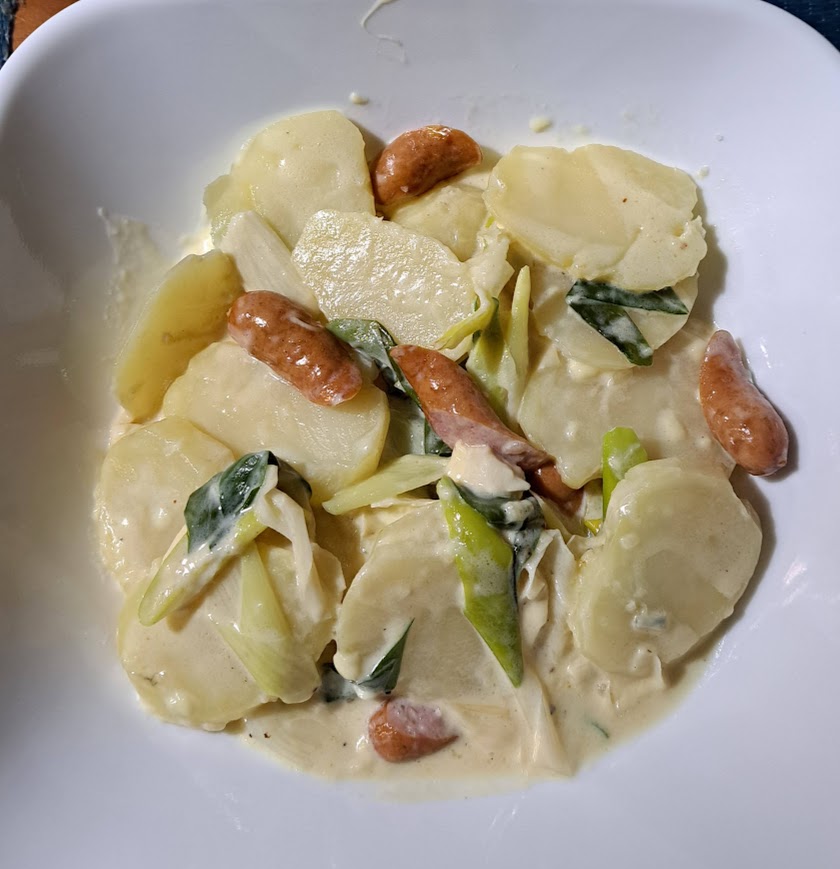 【写真説明】本文とは関係ありません。ジャガイモのブルーチーズ、生クリーム煮込みです。家内が昨夜作ってくれました。寒い夜には、温かく美味しいです。